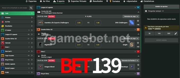 A aposta bet139 oferece aos jogadores a experiência mais conveniente de apostas em eSports!
